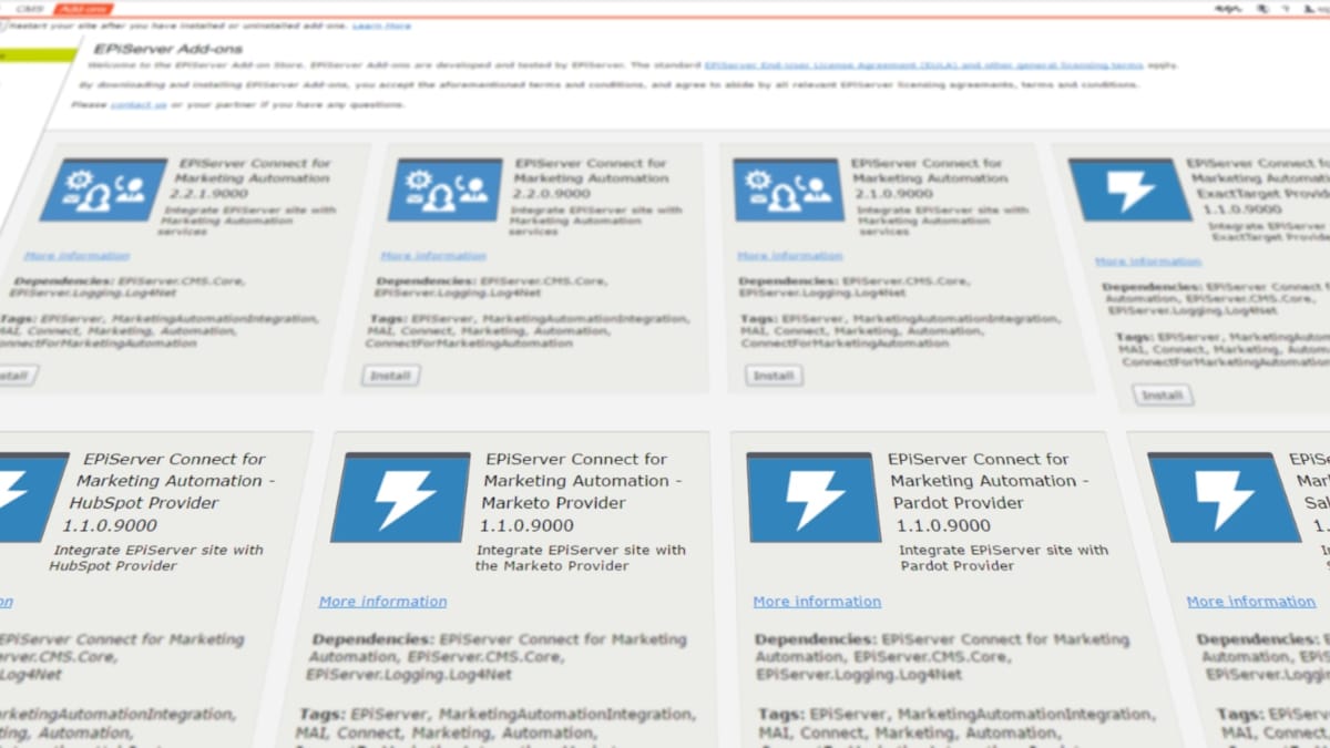 ), they had access to both browse and install available add-ons. In Episerver 8 and 9, there is a config setting to specify if add-ons should be installed from code or via the UI. The new