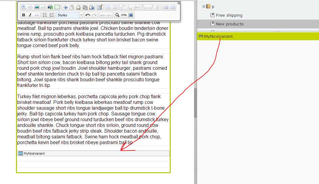 Also, if you're doing this with things that are usually dropped as links (such as PageData-based types), you will need a descriptor telling TinyMCE to create a content block, like shown below.