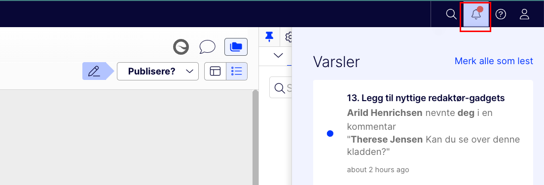 - Den som blir tagget i en kommentar, får en varsling i redaktørgrensesnittet.
